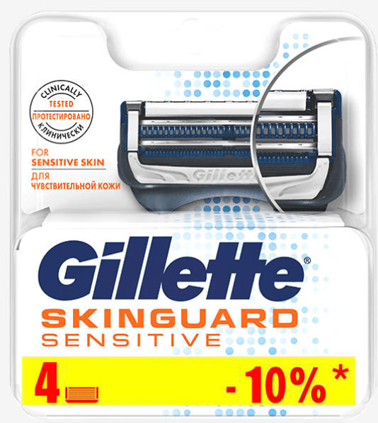 Кассеты для бритья Gillette SkinGuard — это революционный продукт Gillette. Кожа каждого мужчины уникальна. Если у вас акне или чувствительная кожа или же вы боитесь воздействия бритвы с несколькими лезвиями, бритва Gillette SkinGuard создана для вас. Уникальная полоска SkinGuard между лезвиями сбривает волосы, не повреждая кожу. Полоска SkinGuard между лезвиями сокращает трение и позволяет срезать волосы на уровне кожи, уменьшая контакт между кожей и лезвиями. Новая бритва Gillette SkinGuard — это также первая бритва Gillette в России с двойными увлажняющими полосками, которые увлажняют кожу и обеспечивают гладкое бритье.